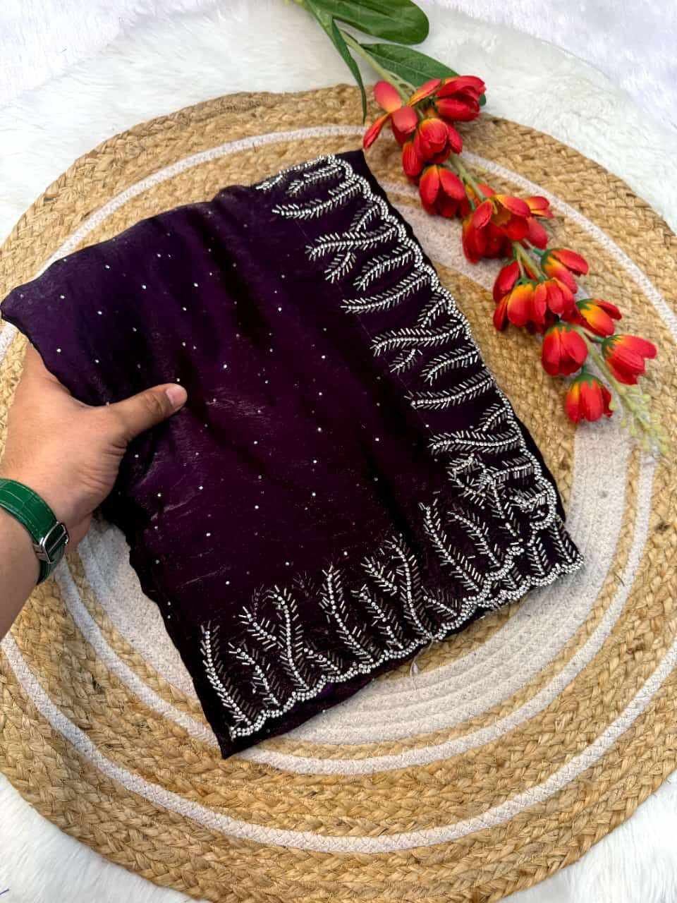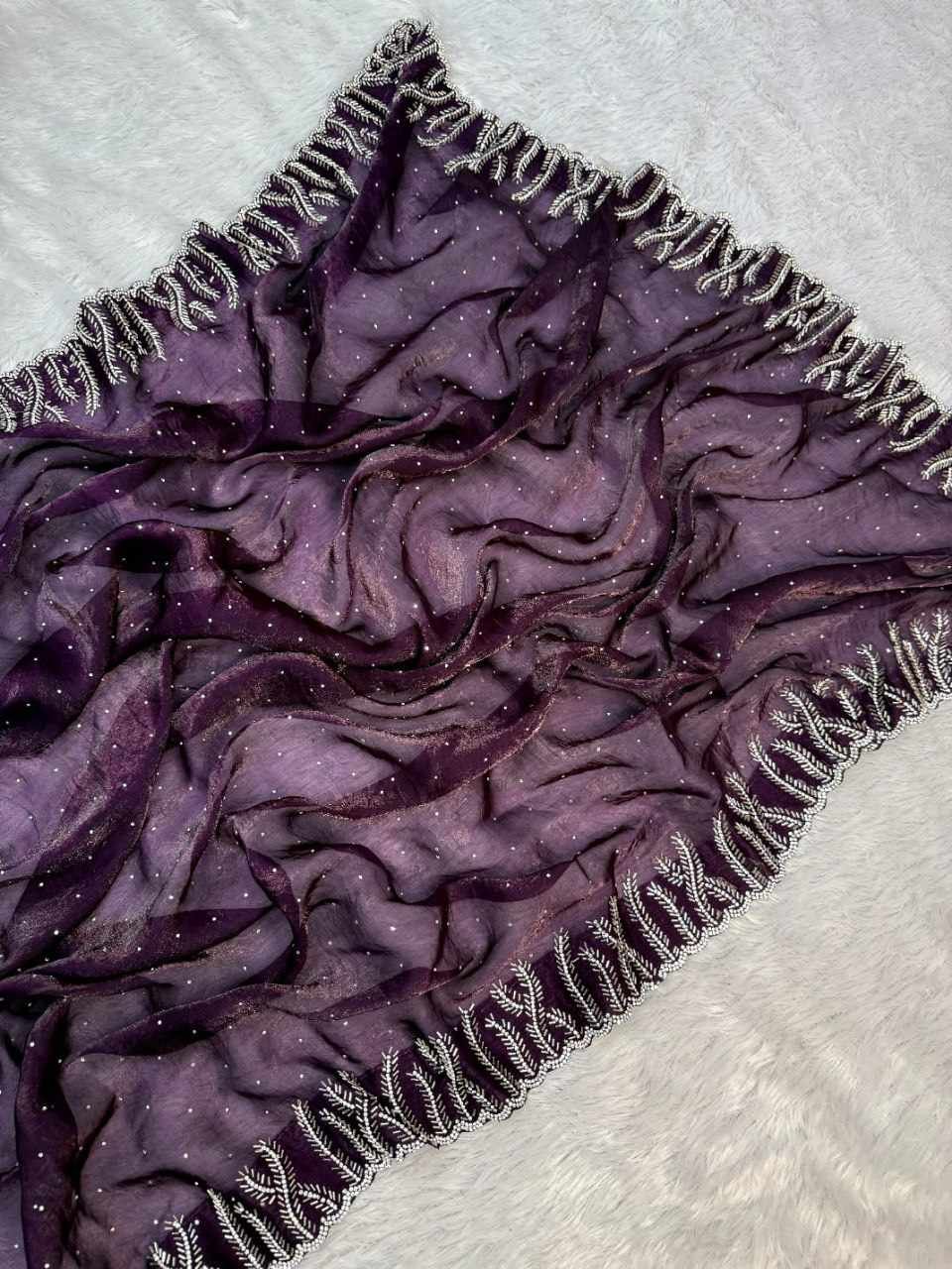 RC Purple Fandy satin silk Saree